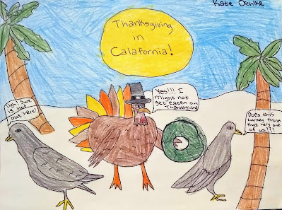 If turkeys could think and behave like us humans they assuredly would not be thankful for the upcoming Thanksgiving holiday. For a fun pre-Thanksgiving project, students in Middle School Art imagined how a turkey might be able to keep from becoming a Thanksgiving main course and drew a "Turkey in Disguise". Have fun seeing their creative ideas!