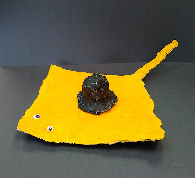 High School Art 1 students just completed a study of the Art Element Form, which in the Art world refers to three dimensional creations. They learned about how some sculptural forms are created with an armature, or kind of skeleton framework underneath. They then created their own sculptural form using aluminum or cardboard armatures and then covered that with CelluClay, a type of Paper Mache. When those were dry they painted them with acrylics and added details. Enjoy seeing their masterpieces below!